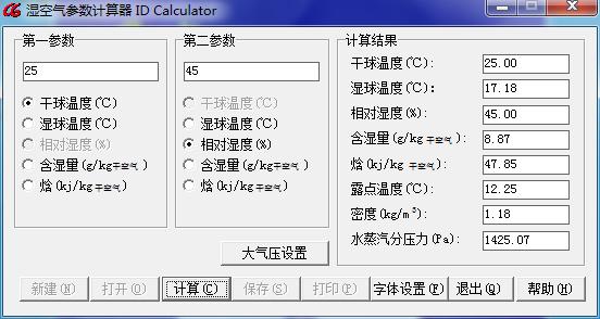 以空氣狀態(tài)點(diǎn):干球溫度T=25℃ 相對(duì)濕度RH45%為例: