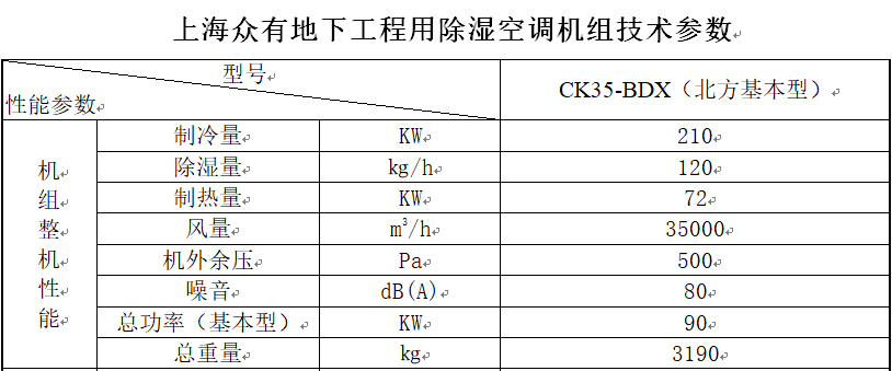 本設(shè)計(jì)方案選用了我司自主研發(fā)的CK35-BDX地下工程用除濕空調(diào)機(jī)組,共含主機(jī)段、送風(fēng)機(jī)段、空氣處理段、混風(fēng)過(guò)濾段,每一個(gè)環(huán)節(jié)都選用上等材質(zhì),確保性能。