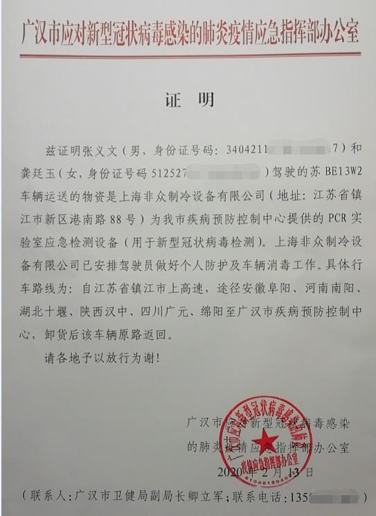 眾有實(shí)業(yè)旗下上海非眾制冷設(shè)備有限公司為四川省廣漢市疾病預(yù)防控制中心PCR實(shí)驗(yàn)室(用于新型冠狀病毒肺炎檢測(cè))提供的凈化型恒溫恒濕空調(diào)設(shè)備已經(jīng)在最短的時(shí)間內(nèi)以最快的專車運(yùn)輸?shù)男问剿椭良部刂行?,用于一線疫情防控。