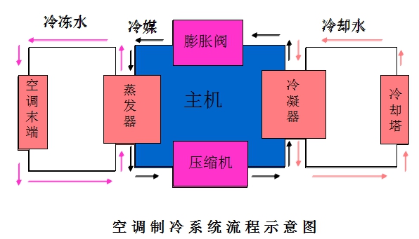 水冷機組空調(diào)系統(tǒng)的主要設(shè)備: