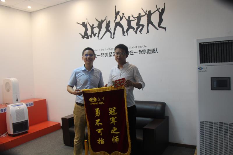 首先獎(jiǎng)勵(lì)的是來(lái)公司僅僅4個(gè)月的銷售梁福華,在7月份炎炎夏日的高溫下不懼辛苦,勤勞務(wù)實(shí)主動(dòng)見客戶,跑客業(yè)務(wù)、不言累、不畏險(xiǎn)、始終堅(jiān)定不移的做市場(chǎng)、做銷售、做客戶,功夫不負(fù)有心人,累水汗水與業(yè)績(jī)達(dá)成正比,梁工與一家公司一次性簽訂了53臺(tái)CFZ-8除濕機(jī)的大單,7月份總體銷售額高達(dá)36萬(wàn)多,能攻下大單,難能可貴,充分展現(xiàn)出了一個(gè)優(yōu)秀銷售員平時(shí)善于鉆研學(xué)習(xí),沉心靜氣跑業(yè)務(wù),不急不躁、不等不靠做業(yè)務(wù)的優(yōu)秀品質(zhì),這樣的工作態(tài)度是我們每個(gè)人學(xué)習(xí)的榜樣。最后由郭總給梁工頒發(fā)錦旗并且給予了紅包獎(jiǎng)勵(lì)。