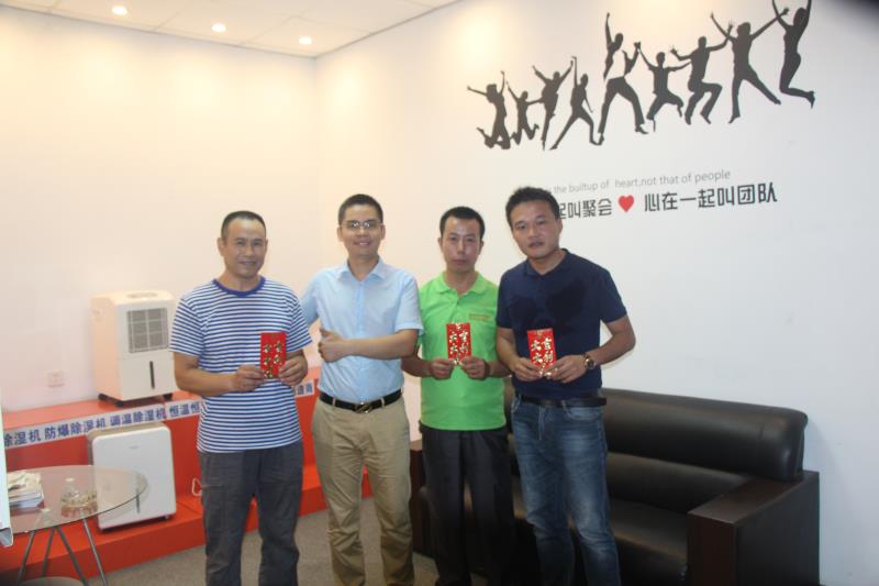 接下來(lái)獎(jiǎng)勵(lì)的是技術(shù)部幸福,品質(zhì)部王義久跟售后部王聚永三個(gè)人。7月19日公司接到浙江海亮股份有限公司的1臺(tái)調(diào)溫除濕機(jī)出現(xiàn)故障,公司當(dāng)即成立了浙江海亮股份有限公司維修工作組。7月20日三人出發(fā)去諸暨,不怕苦、不怕臟、不怕累,反復(fù)檢測(cè),細(xì)心排查,花費(fèi)了大量時(shí)間和精力,終于找到了問(wèn)題所在并辨清了產(chǎn)生問(wèn)題的來(lái)由(屬客戶員工擅自操作不當(dāng)所致機(jī)子壓縮機(jī)損壞),為公司挽回了名譽(yù)與損失。7月23日三人再次上門執(zhí)行維修,犧牲周末休息時(shí)間,冒著高溫酷暑,就著惡劣的現(xiàn)場(chǎng)作業(yè)環(huán)境,扎下身子認(rèn)真維修,甚至于通宵達(dá)旦(7月24日維修到次日凌晨5點(diǎn)),幾經(jīng)辛苦勞累,機(jī)子終于回歸正常,大大提升并提供了公司的品牌與口碑,為公司帶來(lái)了效益和貢獻(xiàn)。經(jīng)公司研究決定,現(xiàn)對(duì)幸福、王義久、王聚永三人以書面通報(bào)表?yè)P(yáng)并各自獎(jiǎng)勵(lì)紅包200元。